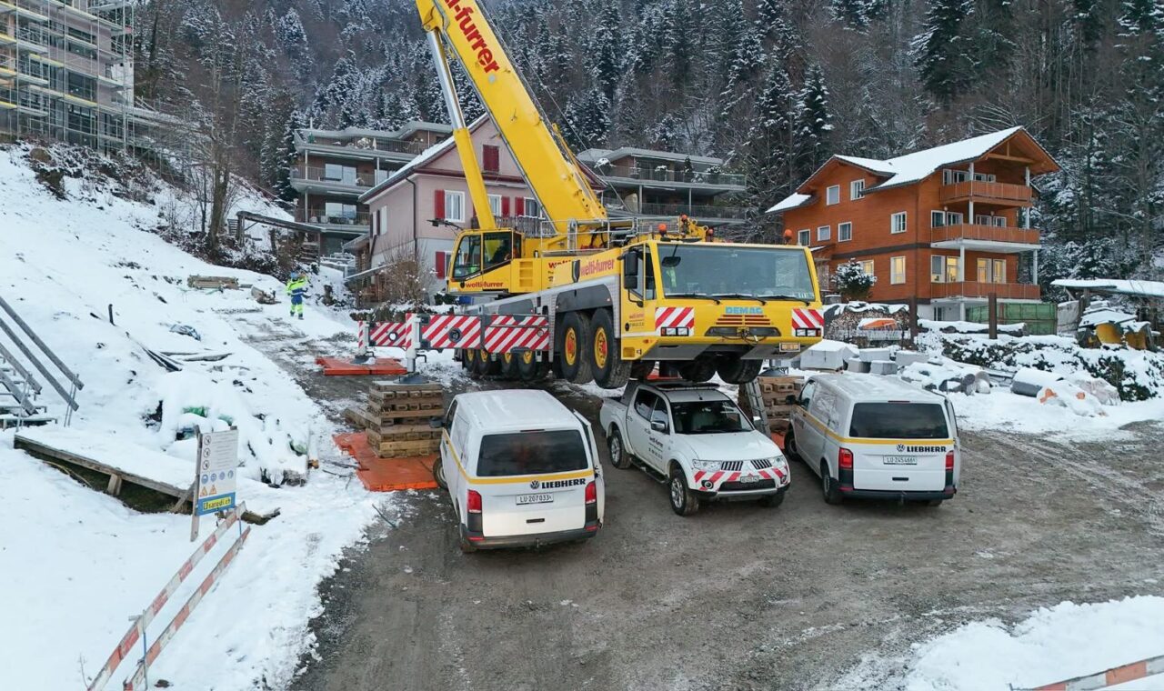 An der Stöcklistrasse in Gersau konnten wir die Krandemontage erfolgreich abschliessen. Die Baustelle für die neuen Eigentumswohnungen stellte aufgrund der steilen Hanglage und der engen Platzverhältnisse besonders hohe Anforderungen an Planung, Koordination und Ausführung.