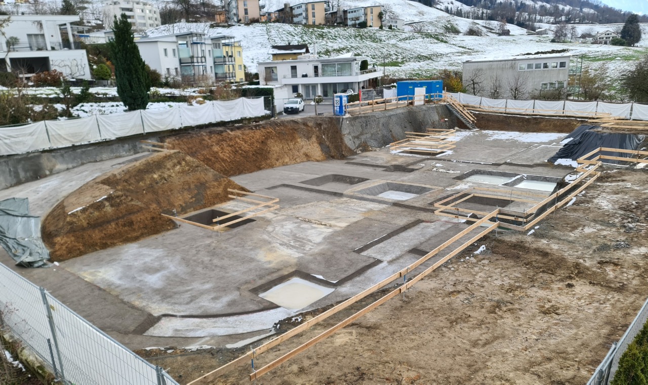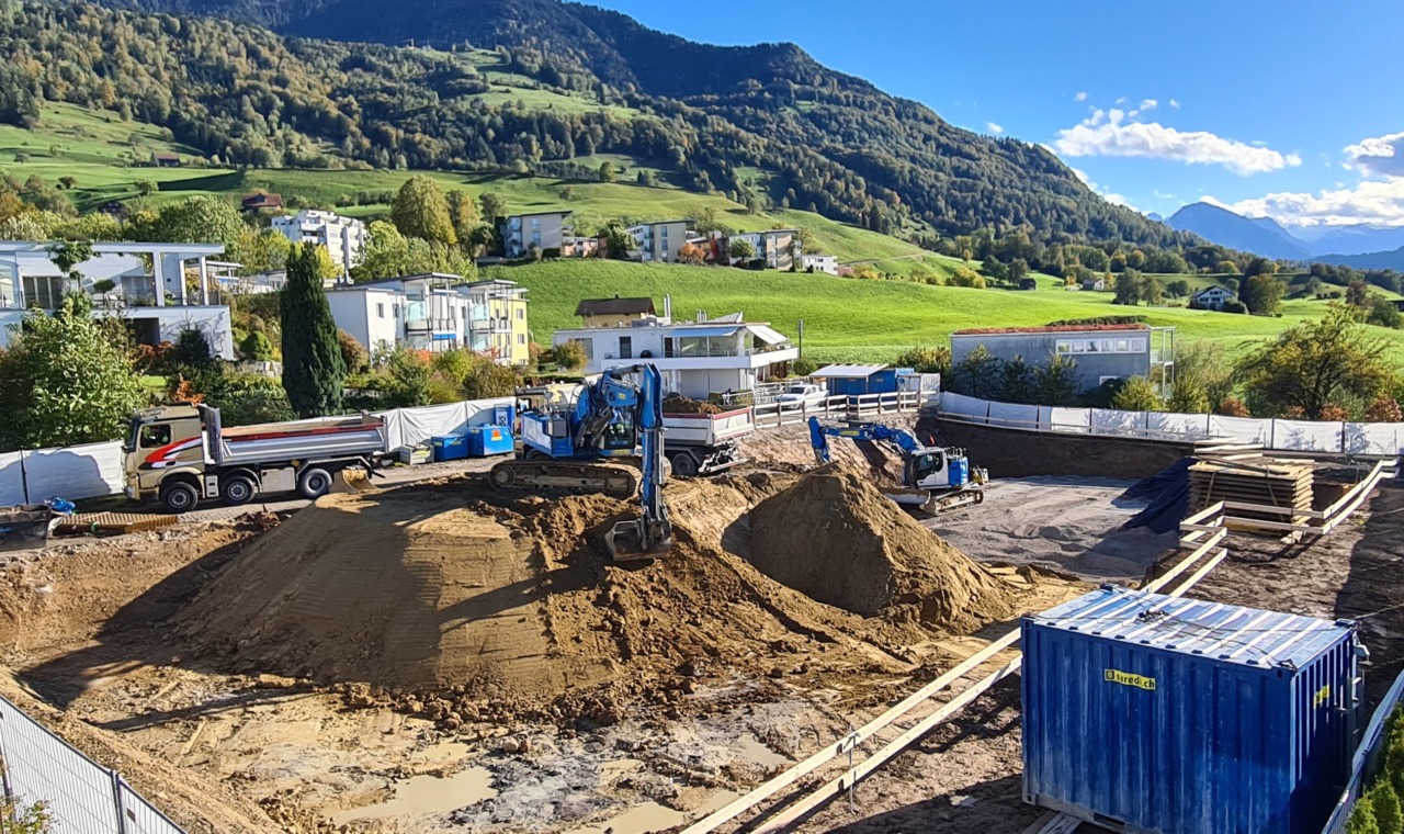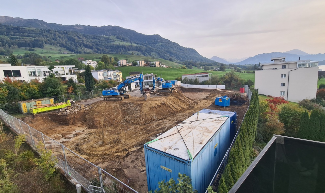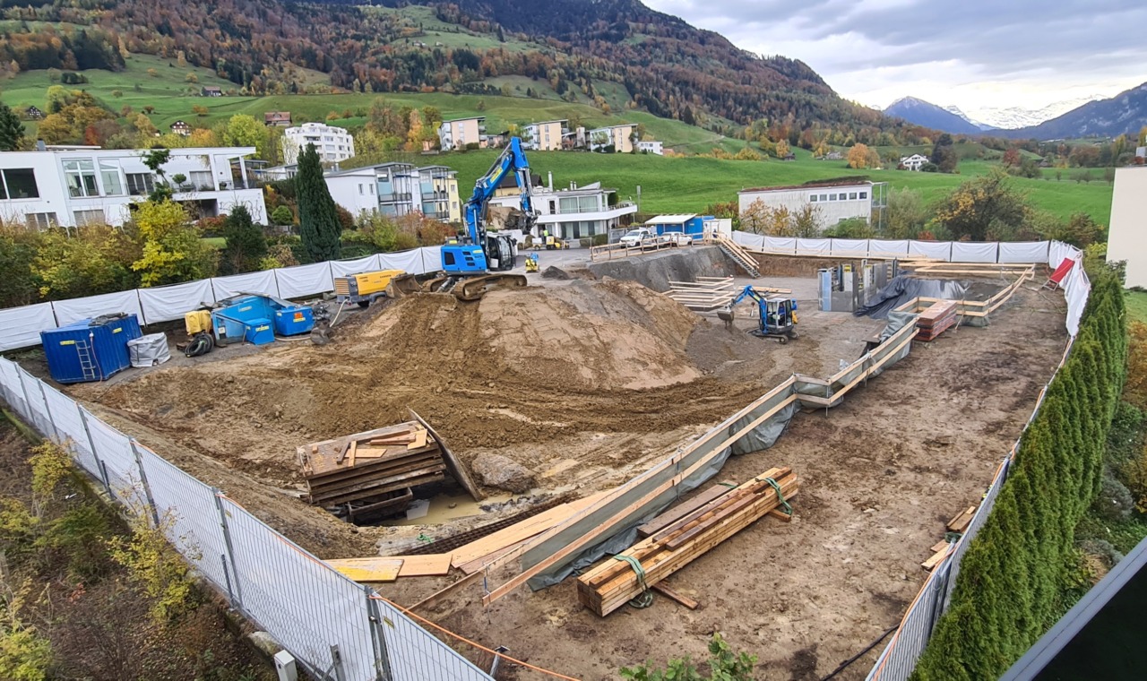 In der Honegg in Küssnacht führte Saredi für den Bauherrn die vollständigen Abbruch- und Aushubarbeiten aus. Der Aushub für die grosse Einstellhalle mit Kellern bildete die Grundlage dafür, dass anschliessend fünf Einfamilienhäuser realisiert werden konnten.