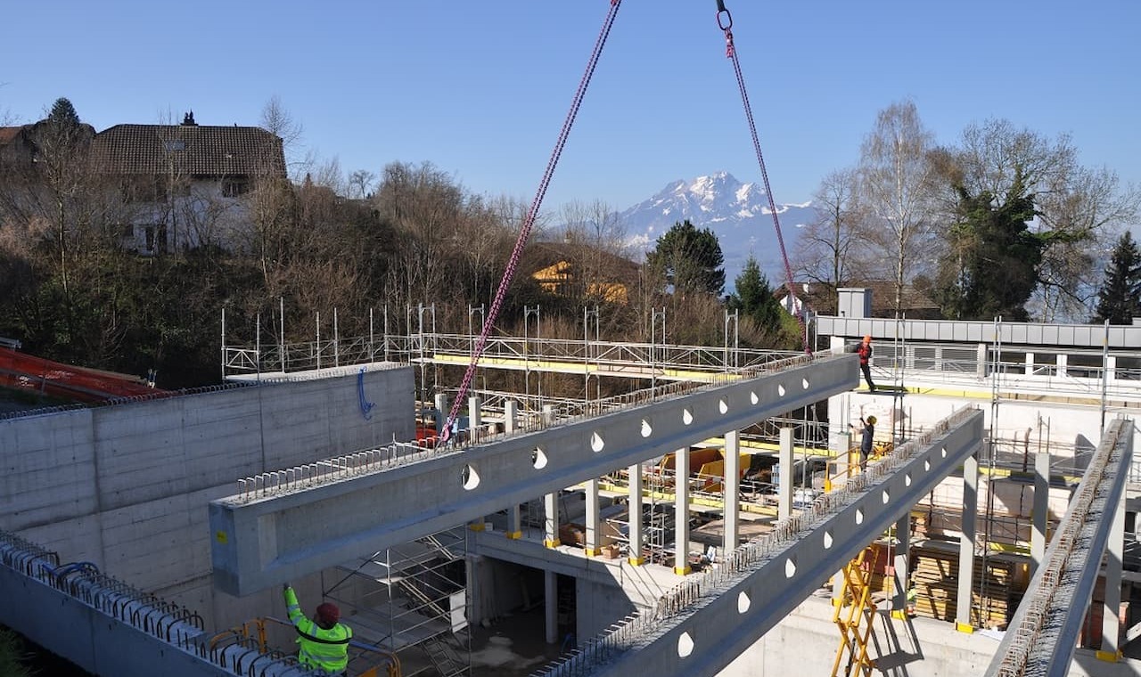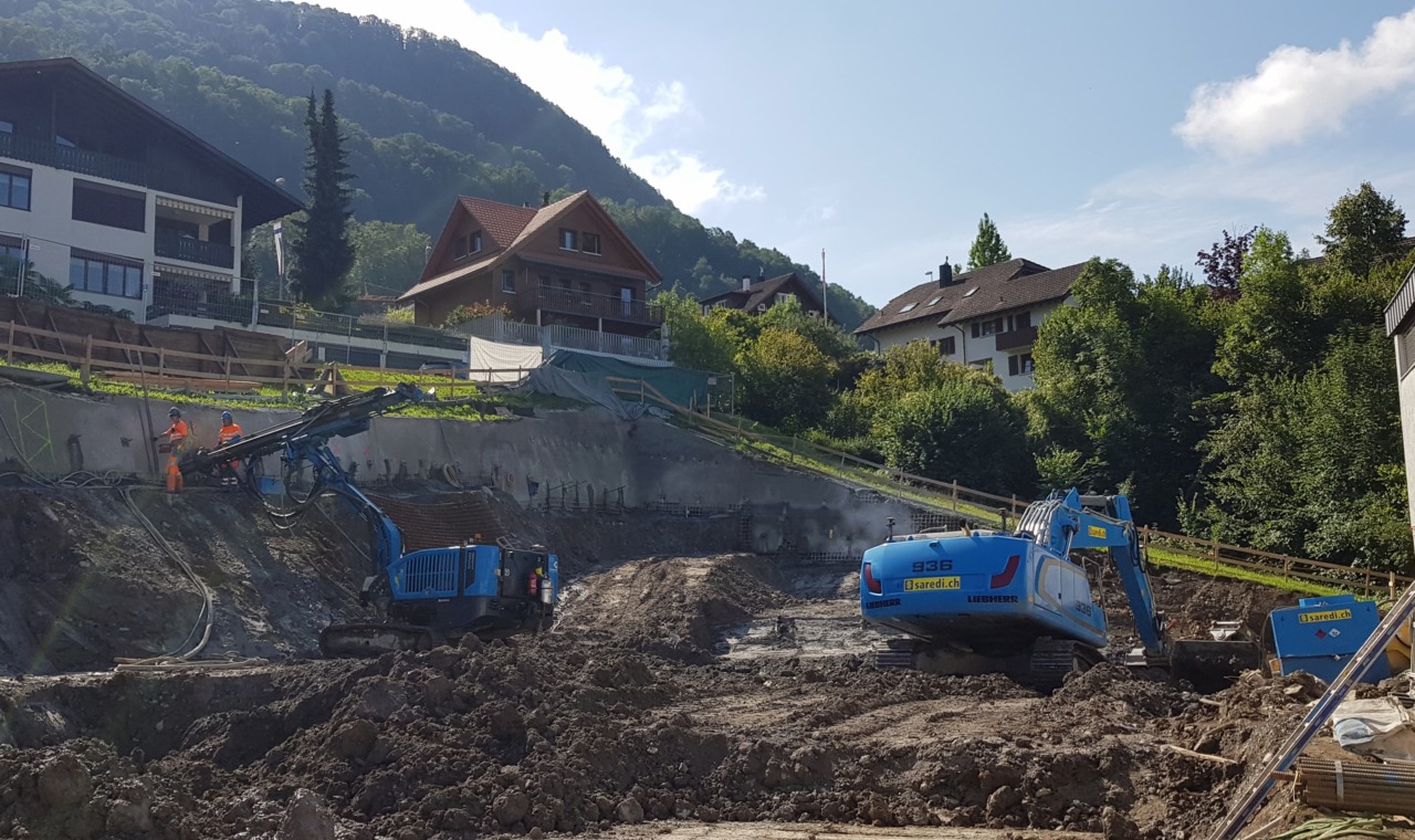 Für das Projekt Greppen Futura realisierte Saredi AG die anspruchsvollen Tiefbau‑ und Hochbaubarbeiten für den Neubau der Turnhalle und den Umbau des Schulhauses. Der Bau erforderte eine bis zu 12 m tiefe Baugrube, die Sicherung des bestehenden Gebäudes sowie präzise Vorarbeiten für den später dominierenden Sichtbeton‑Neubau. Im Rahmen des Projekts wurde die alte Turnhalle zu Klassenzimmern und Gruppenräumen umgebaut, während der Neubau als moderne Mehrzweckhalle in klarer, zurückhaltender Architektur entstand. So leistete Saredi AG einen wesentlichen Beitrag zur hochwertigen, funktionalen und architektonisch anspruchsvollen neuen Schulanlage Greppen.