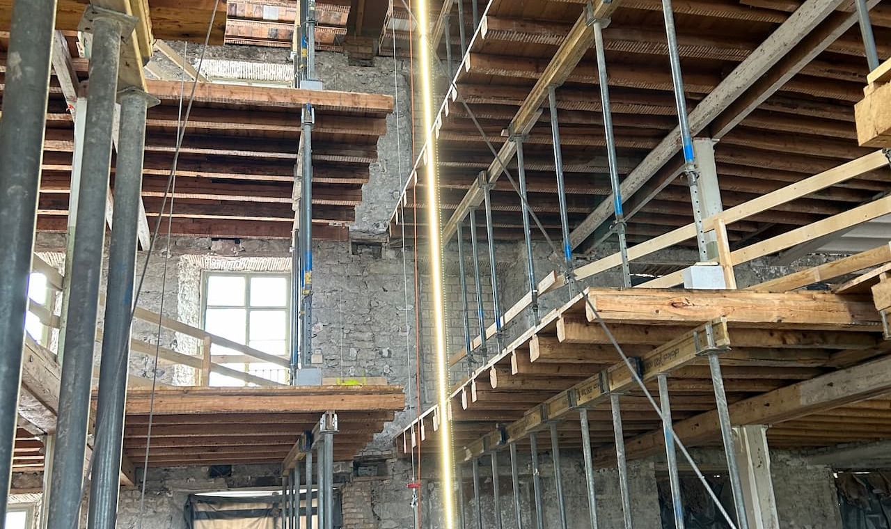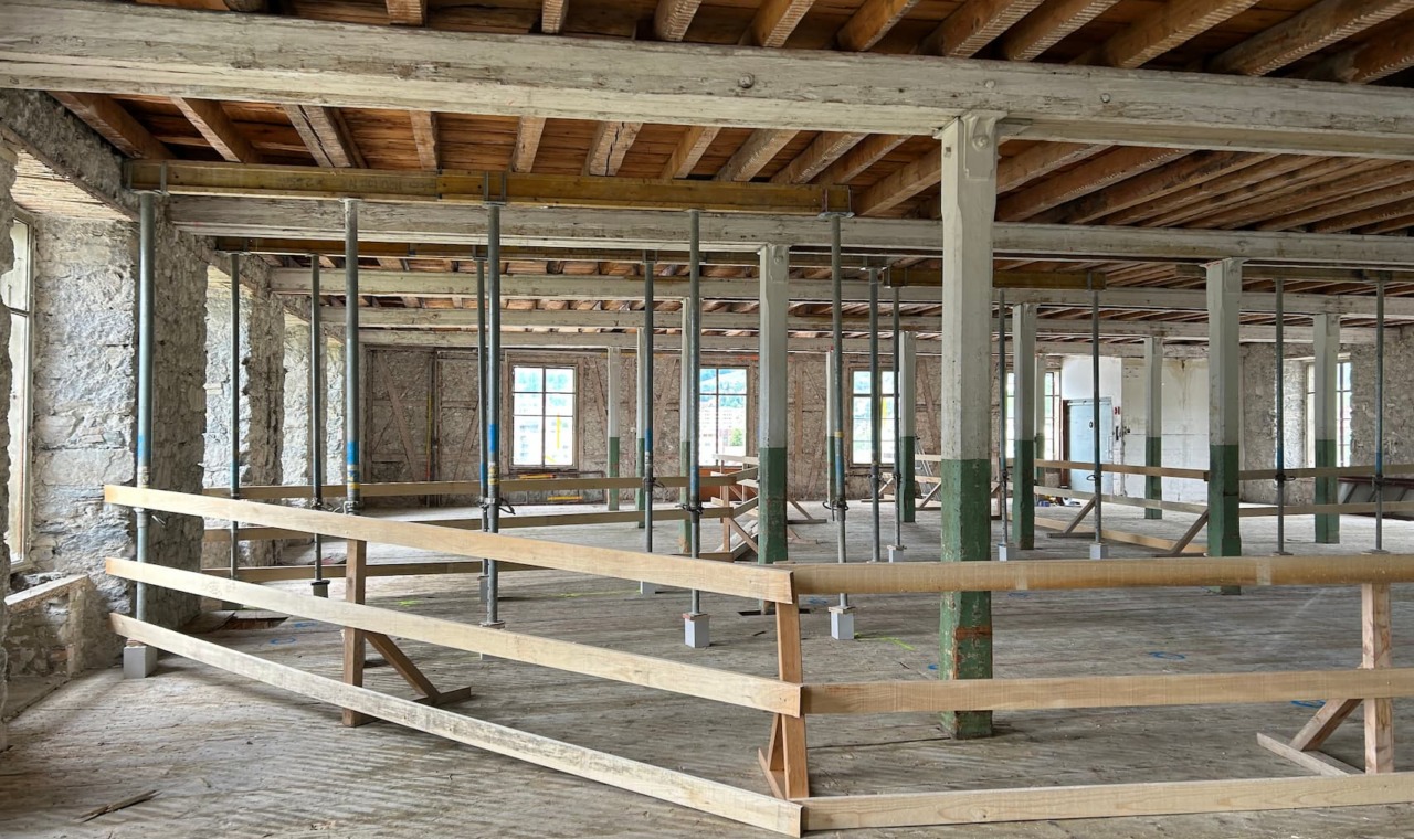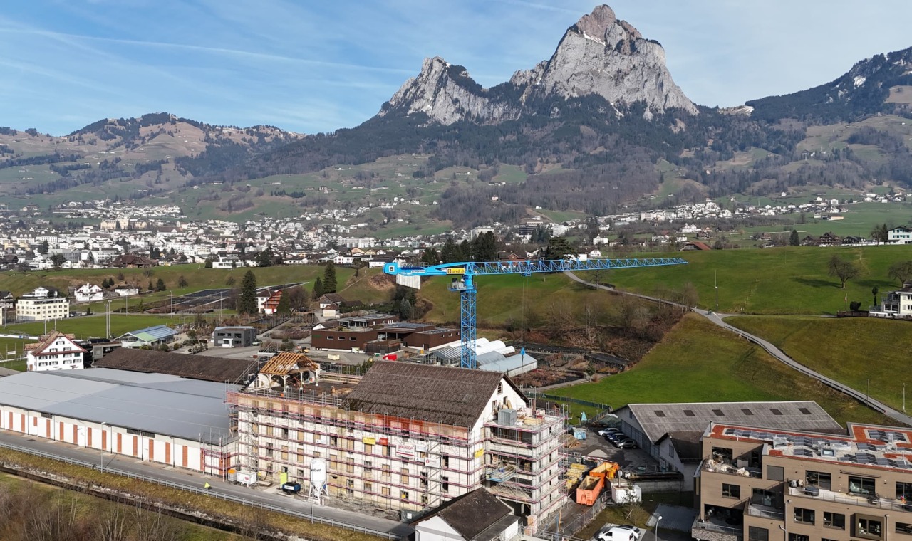 Der Umbau der denkmalgeschützten Spinnerei Ibach von 1858 umfasste eine vollständige Kernsanierung sowie die Wiederherstellung wesentlicher historischer Baustrukturen. Das Gebäude wurde in seinen ursprünglichen Zustand zurückgeführt und statisch ertüchtigt, ergänzt durch einen modernen Anbau zur Erweiterung der Nutzflächen. Die Fassadenabbrüche, Schneid- und Baumeisterarbeiten sowie die konstruktiven Eingriffe erfolgten unter besonderer Rücksichtnahme auf den Bestand. Zur Erreichung eines zeitgemässen energetischen und bauphysikalischen Standards kamen mineralische Dämmungen, Sanierputzsysteme und kapillaraktive Innenputze zum Einsatz, welche die historische Substanz schützen und gleichzeitig ein gesundes Raumklima gewährleisten. Die Transformation verbindet industrielle Originalsubstanz mit modernen bautechnischen Anforderungen und schafft so die Grundlage für einen multifunktionalen Wohn‑ und Gewerbekomplex.