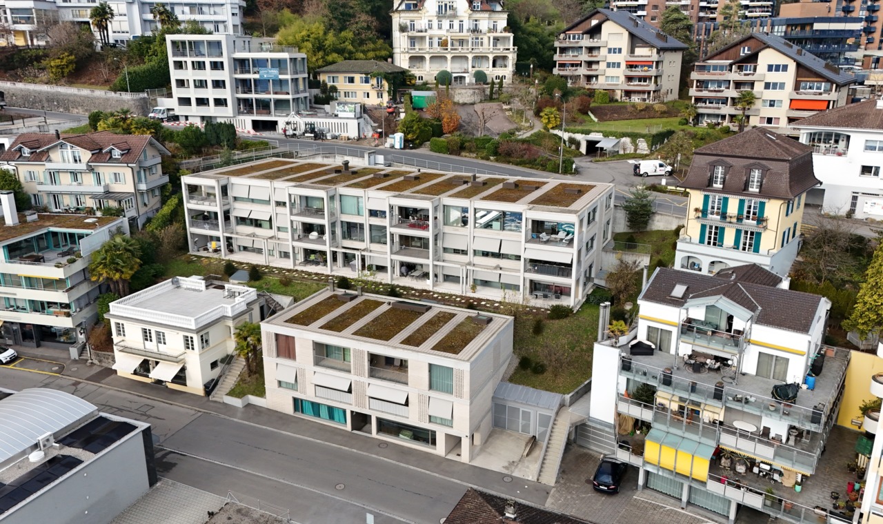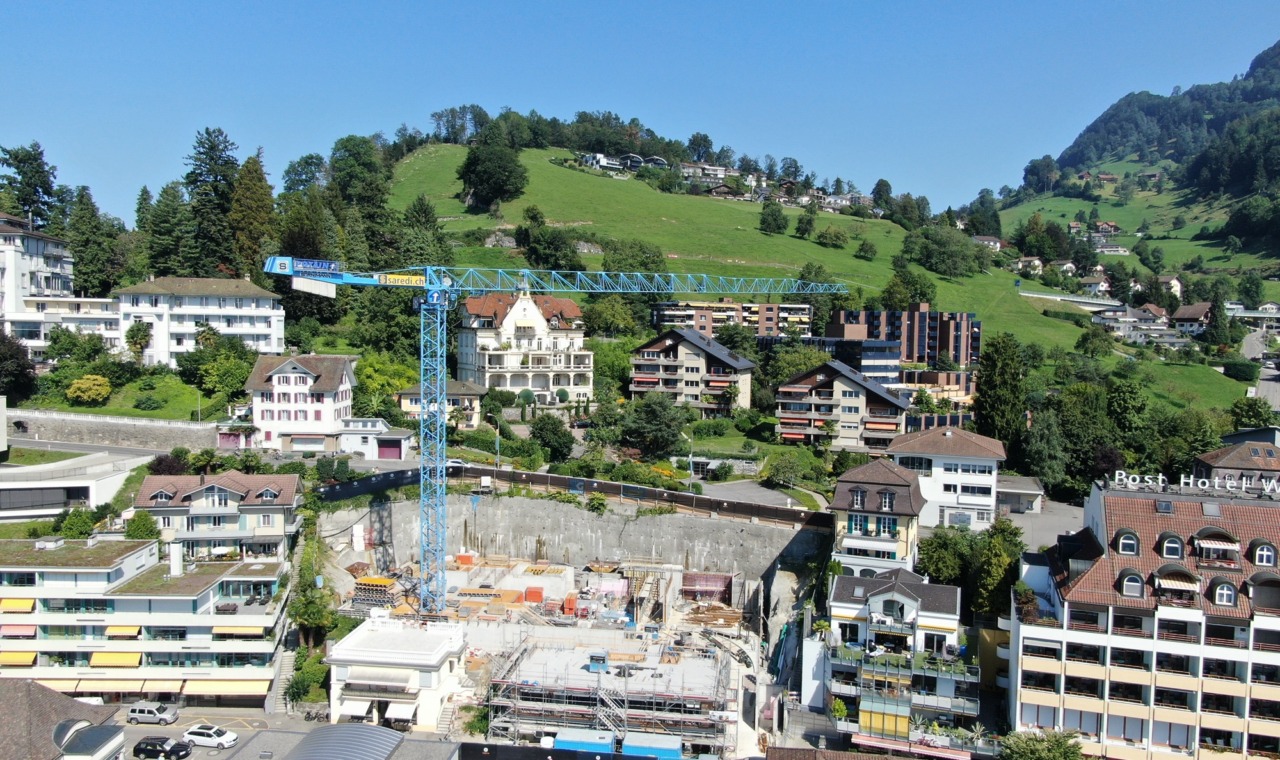 Das ehemalige Hotel «Paradies» in Weggis bietet dank zentraler Lage und Panoramablick einen einzigartigen Bauplatz. Zwei Baukörper – ein dreigeschossiges, geradliniges Gebäude am oberen Hang und ein kompaktes Gebäude am Südrand – fügen sich harmonisch in die Umgebung ein. Helle Klinker- und Betonfassaden verleihen den Bauten eine zeitlose Eleganz, während standorttypische Elemente wie Veranden und Wintergärten modern interpretiert werden.